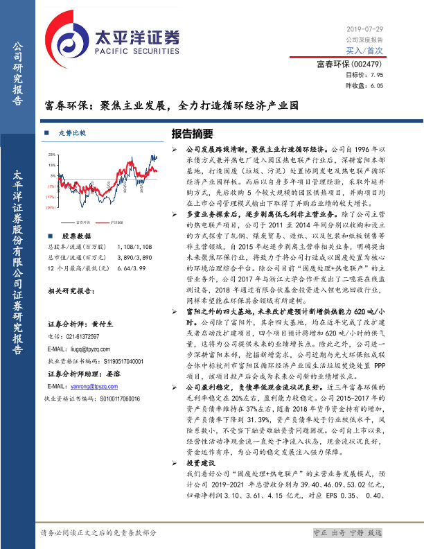 【太平洋证券】【20190729】富春环保:聚焦主业发展,全力打造循环经济产业园-20页