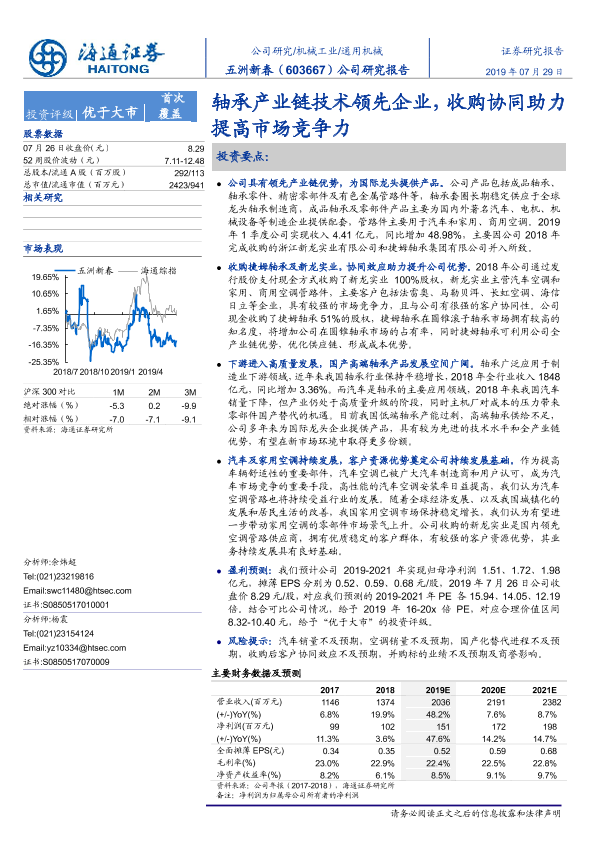 【海通证券】【20190729】五洲新春-603667.SH-公司研究报告:轴承产业链技术领先企业,收购协同助力提高市场竞争力-27页