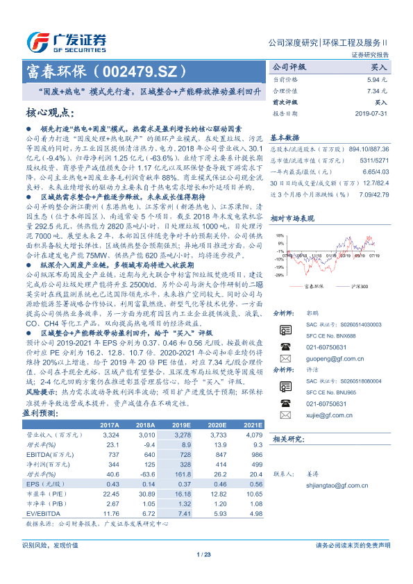【广发证券】【20190731】“固废+热电”模式先行者,区域整合+产能释放推动盈利回升-23页