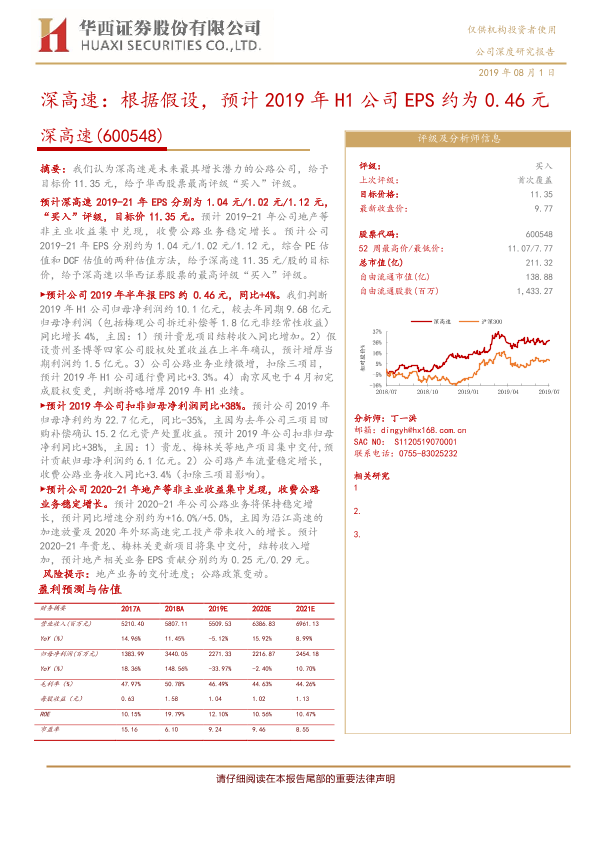 【华西证券】【20190801】深高速:根据假设,预计2019年H1公司EPS约为0.46元-13页