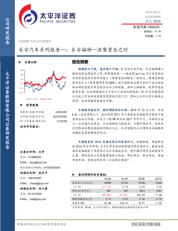 【太平洋证券】【20190801】长安汽车系列报告一:长安福特—涅槃重生之时-21页
