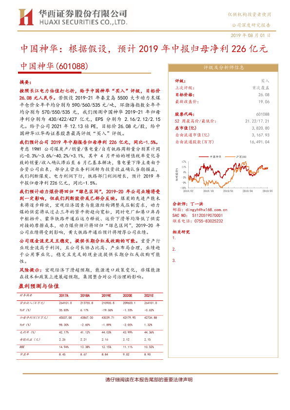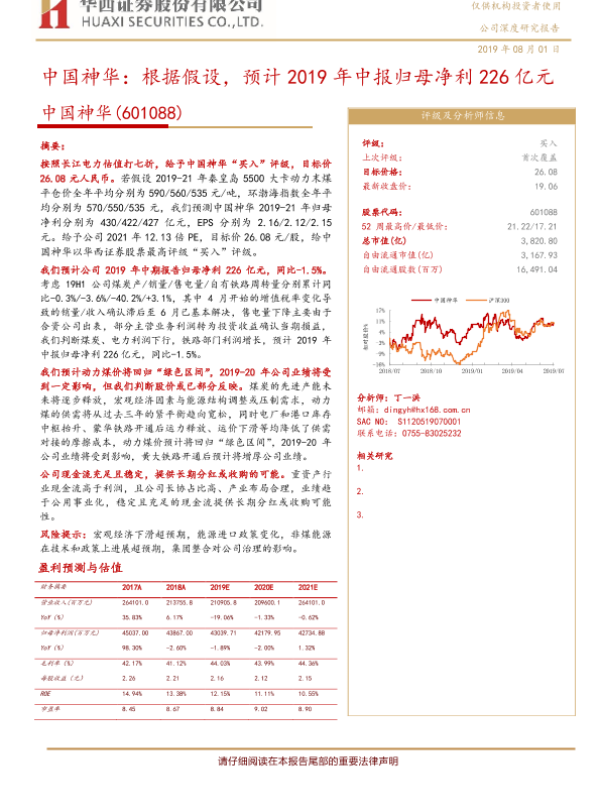 【华西证券】【20190801】中国神华:根据假设,预计2019年中报归母净利226亿元-21页
