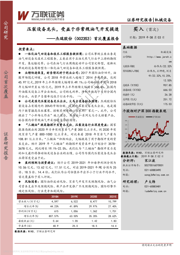 【万联证券】【20190803】20190803-万联证券-杰瑞股份-002353.SZ-首次覆盖报告:压裂设备龙头,受益于非常规油气开发提速-26页