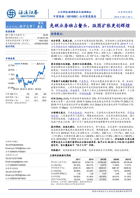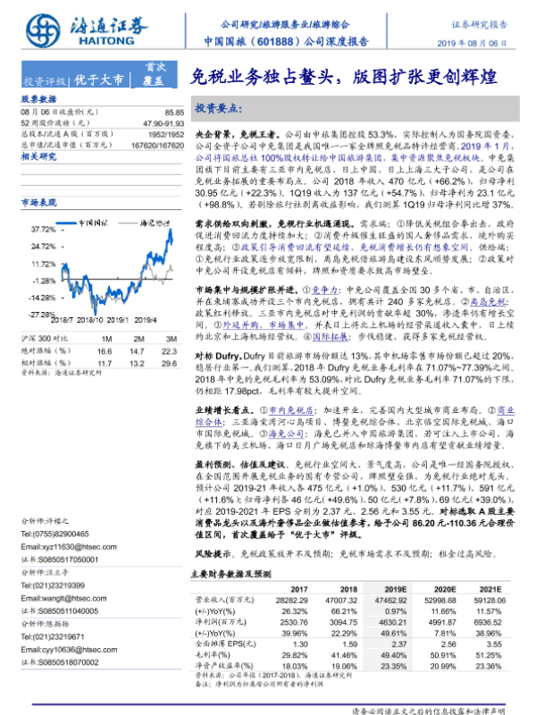 【海通证券】【20190806】中国中免-601888.SH-公司深度报告:免税业务独占鳌头,版图扩张更创辉煌-38页