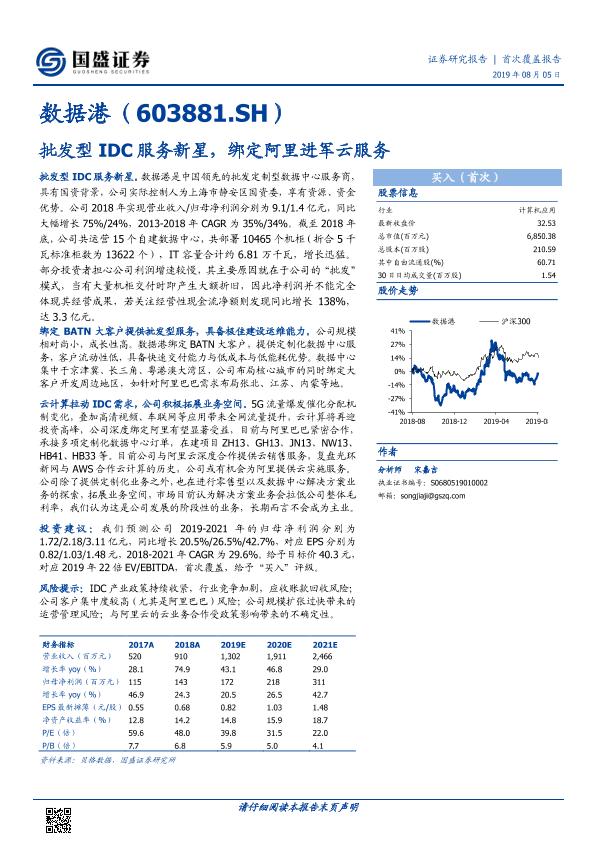 【国盛证券】【20190805】数据港-批发型IDC服务新星,绑定阿里进军云服务-35页