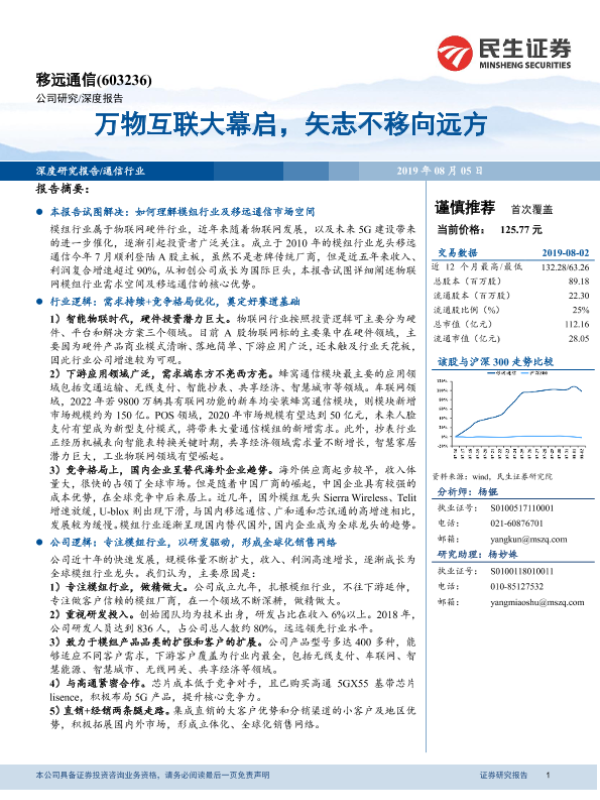 【民生证券】【20190805】20190805-民生证券-移远通信-603236.SH-万物互联大幕启,矢志不移向远方-41页