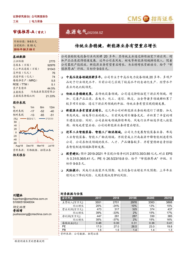 【海通证券】【20190809】20190809-招商证券-森源电气-002358.SZ-传统业务稳健,新能源业务有望重启增长-32页