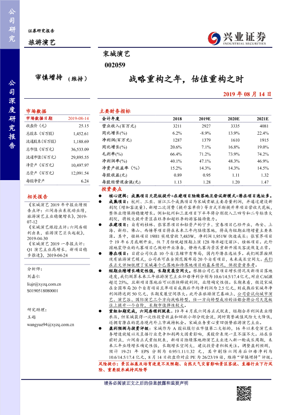 【兴业证券】【20190814】20190814-兴业证券-宋城演艺-300144.SZ-战略重构之年,估值重构之时-48页