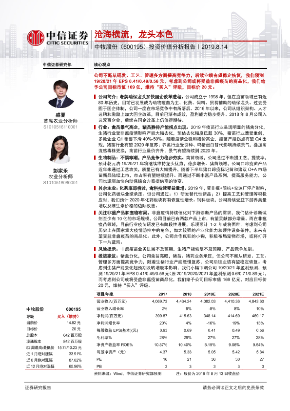 【中信证券】【20190814】20190814-中信证券-中牧股份-600195.SH-投资价值分析报告:沧海横流,龙头本色-29页