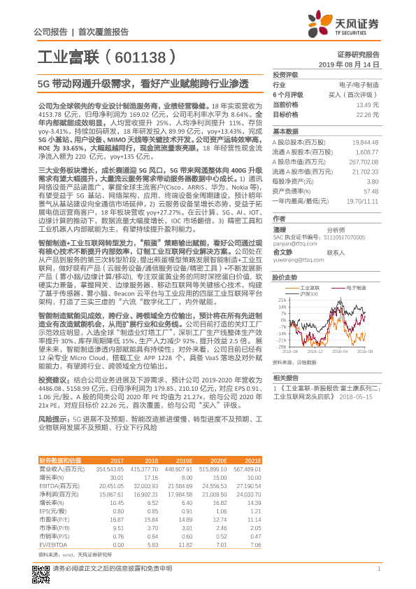 【天风证券】【20190814】5G带动网通升级需求,看好产业赋能跨行业渗透-35页