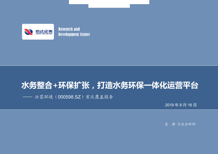【信达证券】【20190816】水务整合+环保扩张,打造水务环保一体化运营平台-22页