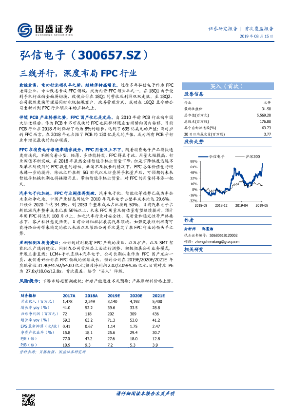 【国盛证券】【20190815】弘信电子:三线并行,深度布局FPC行业-38页