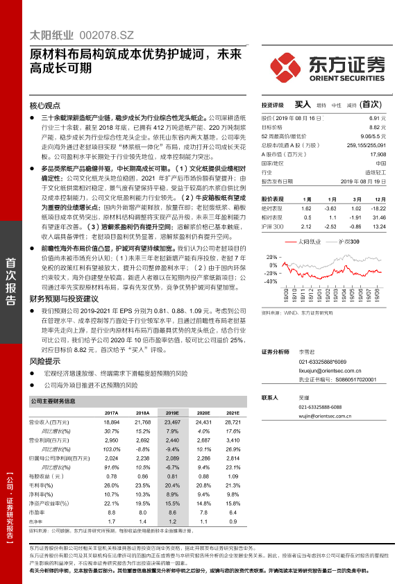 原材料布局 成本优势 证券研究报告 造纸行业 高成长预期