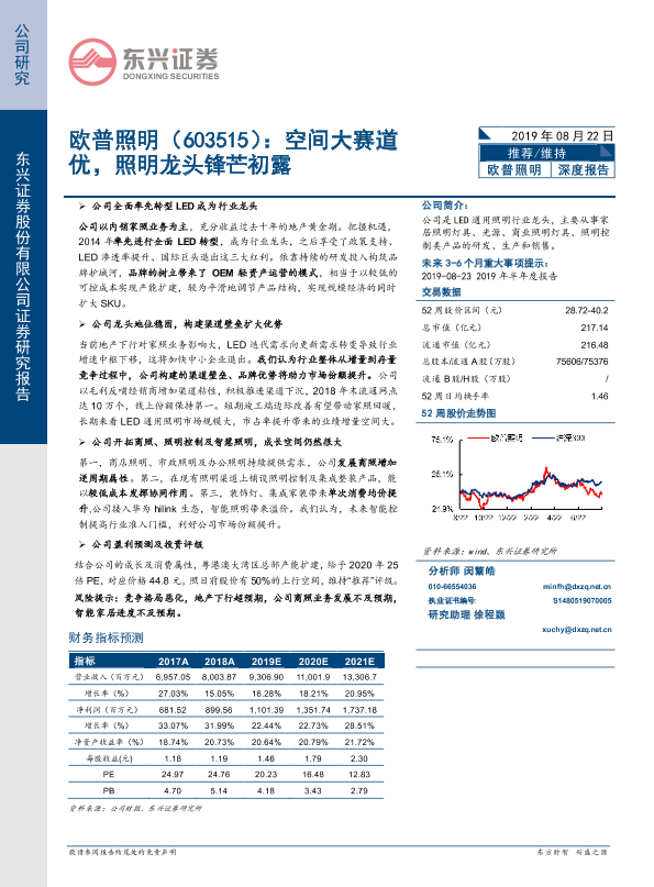 【东兴证券】【20190822】欧普照明:空间大赛道优,照明龙头锋芒初露-27页