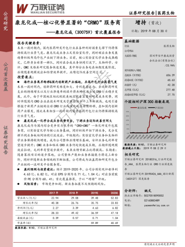 【万联证券】【20190830】康龙化成—核心优势显著的“CRMO”服务商-24页