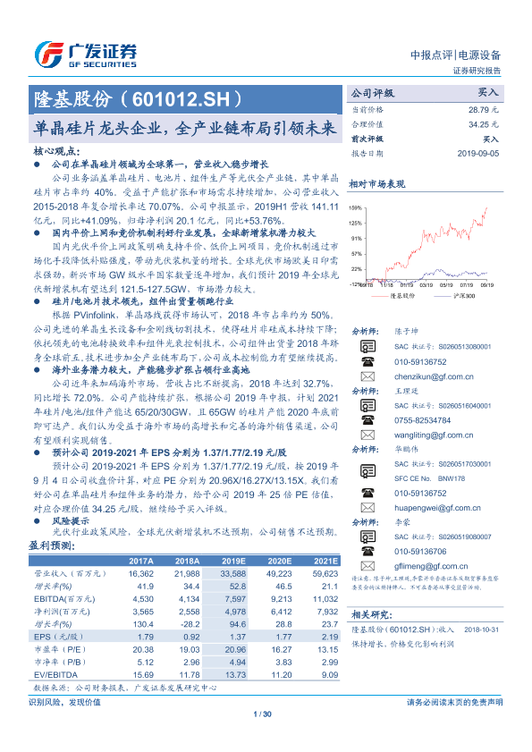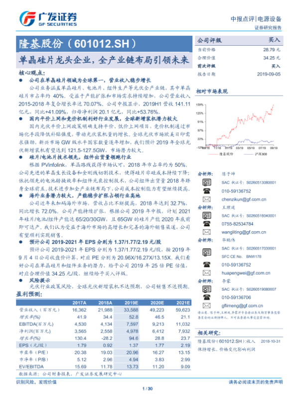 【广发证券】【20190905】20190905-广发证券-隆基股份-601012.SH-单晶硅片龙头企业,全产业链布局引领未来-30页