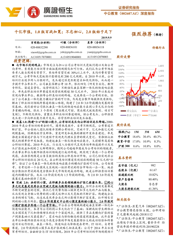 【广证恒生】【20190909】20190909-广证恒生证券研究所-中公教育-002607.SZ-深度报告:千亿市值,1.0版百战加冕;不忘初心,2.0版始于足下-36页