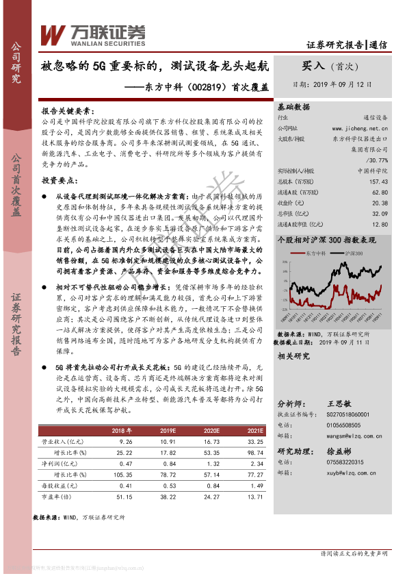 【万联证券】【20190912】20190912-万联证券-东方中科-002819.SZ-首次覆盖:被忽略的5G重要标的,测试设备龙头起航-20页
