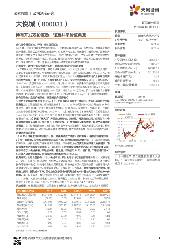 【天风证券】【20190911】大悦城-持有开发双轮驱动,轻重并举价值典范-21页
