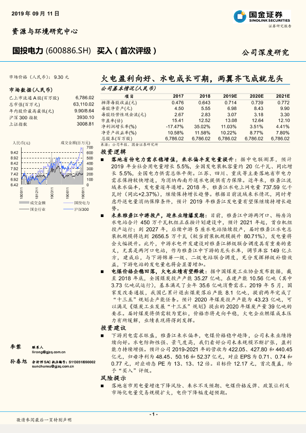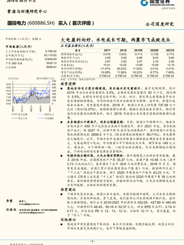 【国金证券】【20190911】国投电力-600886.SH-火电盈利向好、水电成长可期,两翼齐飞成就龙头-21页