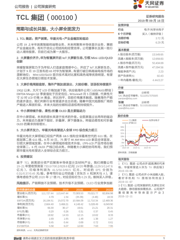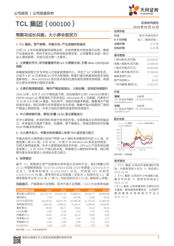 【天风证券】【20190916】20190916-天风证券-TCL科技-000100.SZ-周期与成长共振,大小屏全面发力-33页