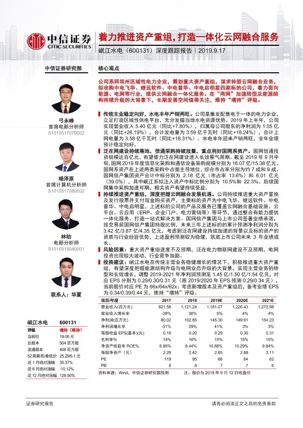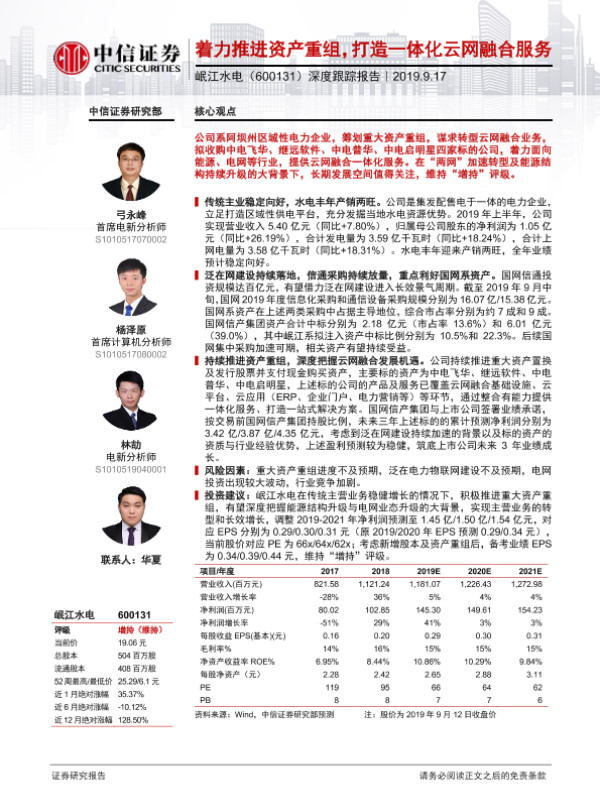 【中信证券】【20190917】20190917-中信证券-国网信通-600131.SH-深度跟踪报告:着力推进资产重组,打造一体化云网融合服务-29页
