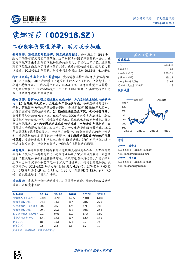 【国盛证券】【20190920】蒙娜丽莎-工程&零售渠道并举,助力成长加速-24页