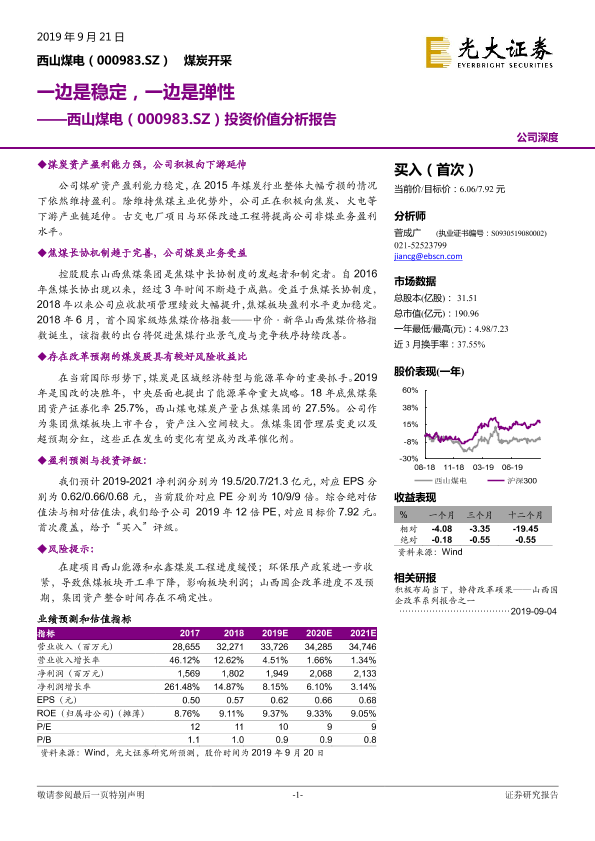 【光大证券】【20190921】20190921-光大证券-山西焦煤-000983.SZ-投资价值分析报告:一边是稳定,一边是弹性-23页