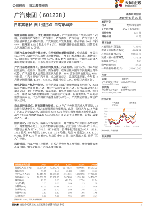 【天风证券】【20190920】20190920-天风证券-广汽集团-601238.SH-日系高增长 自主迎拐点 且有豪华梦-21页