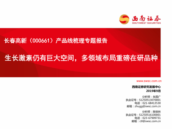 【西南证券】【201909】20190924-西南证券-长春高新-000661.SZ-产品线梳理专题报告:生长激素仍有巨大空间,多领域布局重磅在研品种-29页