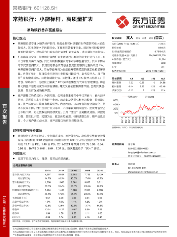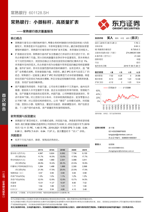 【东方证券】【20190926】常熟银行首次覆盖报告:小微标杆,高质量扩表-21页