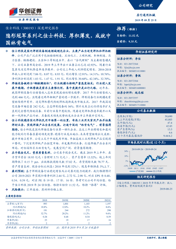 【华创证券】【20190925】隐形冠军系列之佳士科技:厚积薄发,成就中国林肯电气-29页