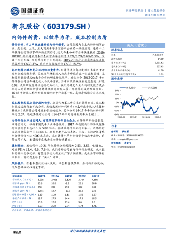 【国盛证券】【20190925】新泉股份-603179.SH-内饰件新贵,以效率为矛,成本控制为盾-25页