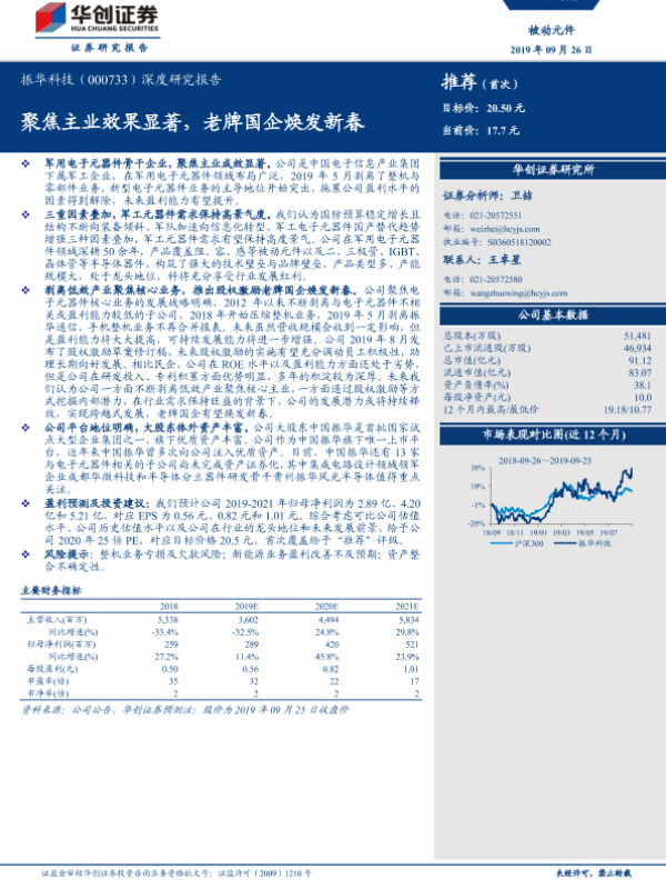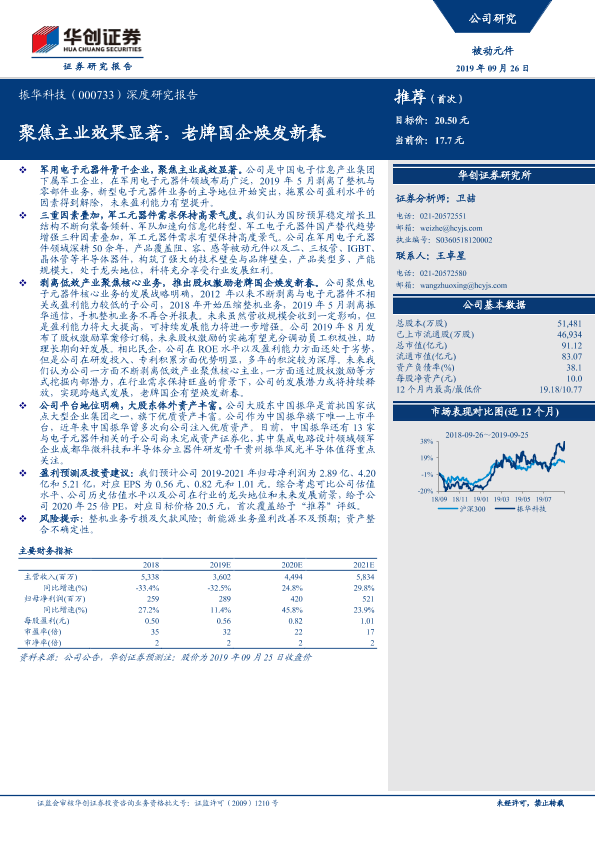 【华创证券】【20190926】20190926-华创证券-振华科技-000733.SZ-深度研究报告:聚焦主业效果显著,老牌国企焕发新春-30页