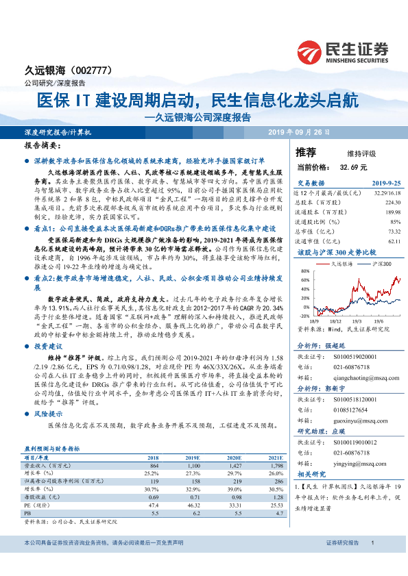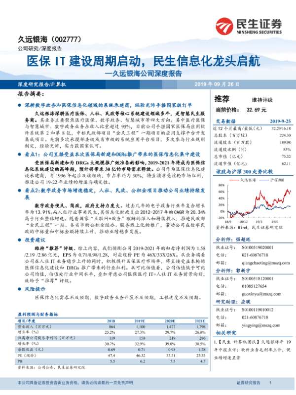 【民生证券】【20190926】20190926-民生证券-久远银海-002777.SZ-久远银海公司深度报告:医保IT建设周期启动,民生信息化龙头启航-25页