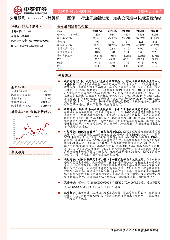 【中泰证券】【20190926】20190926-中泰证券-久远银海-002777.SZ-医保IT行业开启新纪元,龙头公司短中长期逻辑清晰-23页