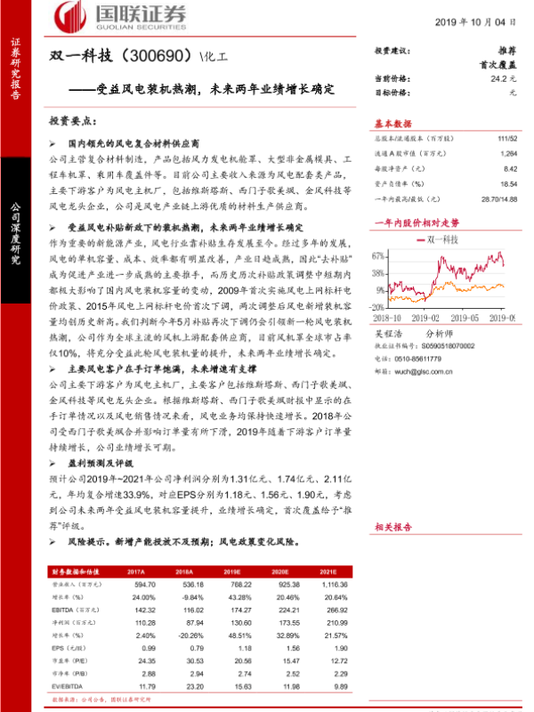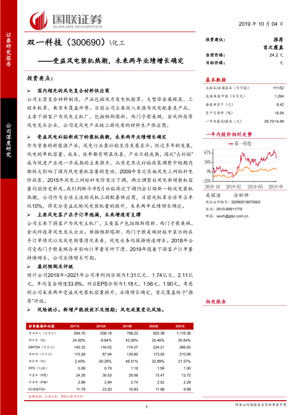 【国联证券】【20191004】双一科技-受益风电装机热潮,未来两年业绩增长确定-20页