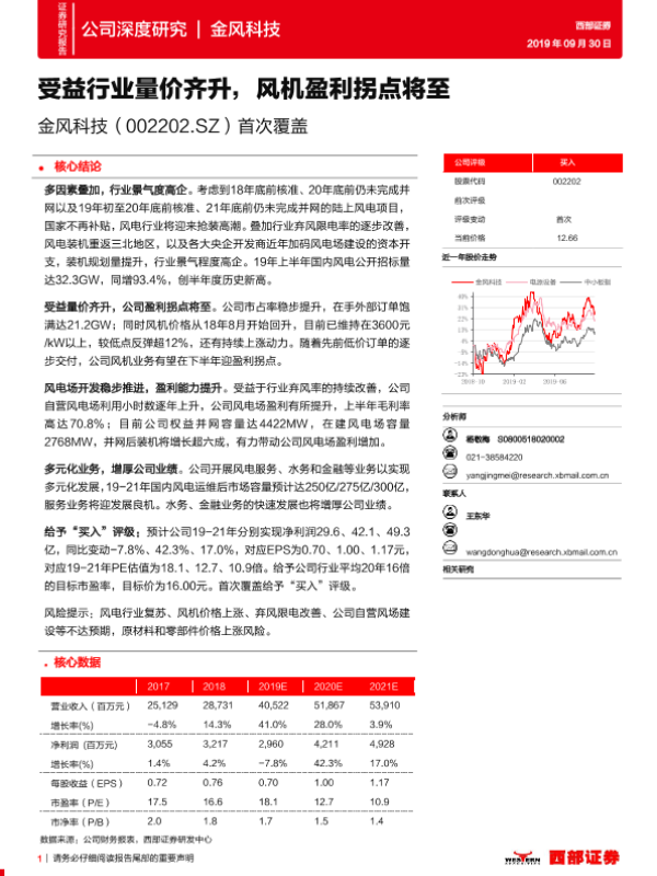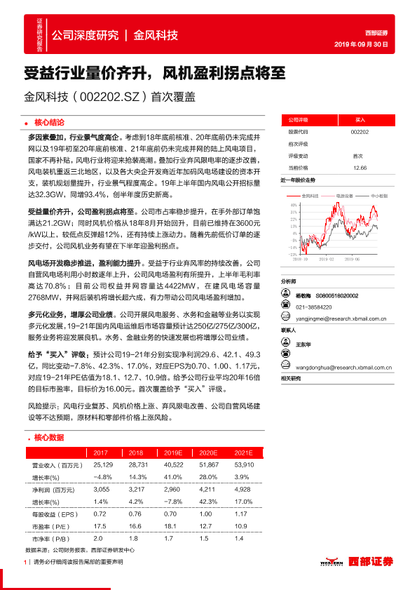 【西部证券】【20190930】20190930-西部证券-金风科技-002202.SZ-首次覆盖:受益行业量价齐升,风机盈利拐点将至-32页