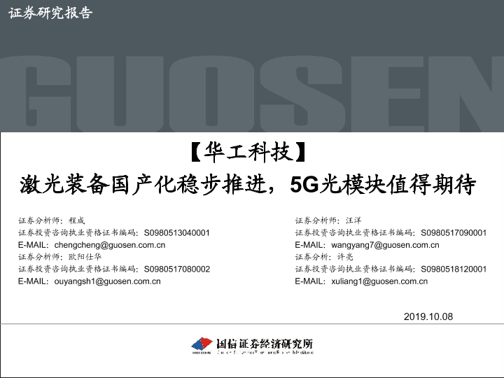 【国信证券】【20191008】华工科技-激光装备国产化稳步推进,5G光模块值得期待-55页