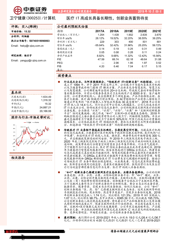 【中泰证券】【20191009】20191009-中泰证券-卫宁健康-300253.SZ-医疗IT高成长具备长期性,创新业务蓄势待发-30页