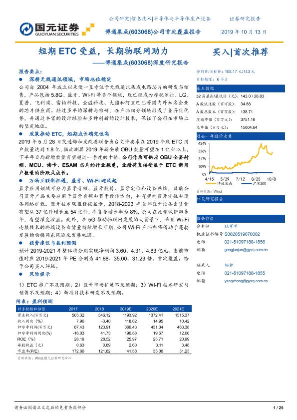 【国元证券】【20191013】短期ETC受益,长期物联网助力——博通集成(603068)深度研究报告-25页