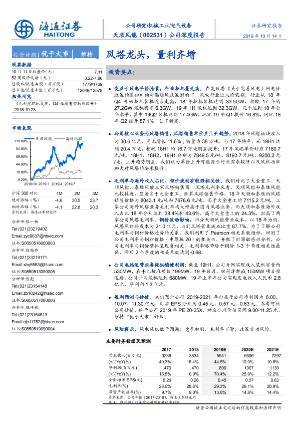 【海通证券】【20191014】天顺风能-002531.SZ-公司深度报告:风塔龙头,量利齐增-19页