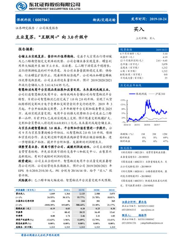 【东北证券】【20191025】保税科技-主业复苏,“互联网+”向3.0升级中-25页