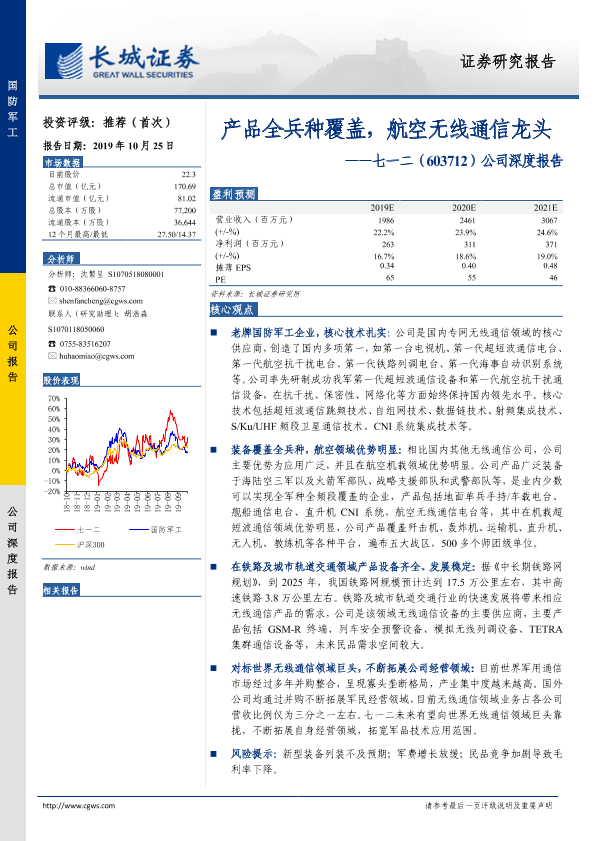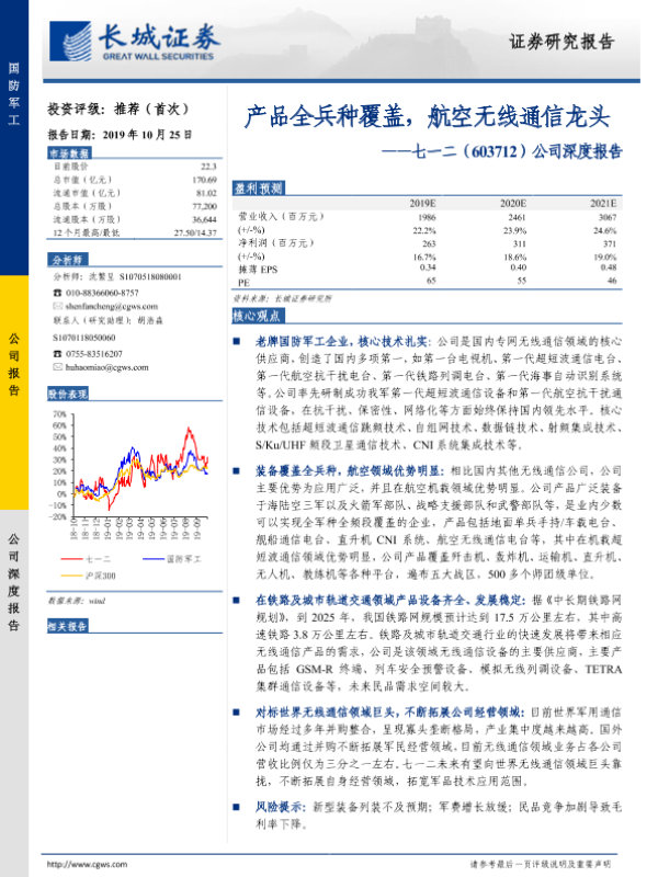 【长城证券】【20191025】20191025-长城证券-七一二-603712.SH-公司深度报告:产品全兵种覆盖,航空无线通信龙头-30页