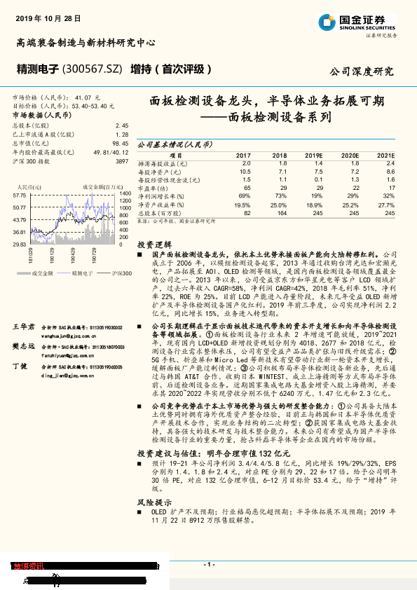 【国金证券】【20191028】面板检测设备系列:面板检测设备龙头,半导体业务拓展可期-36页