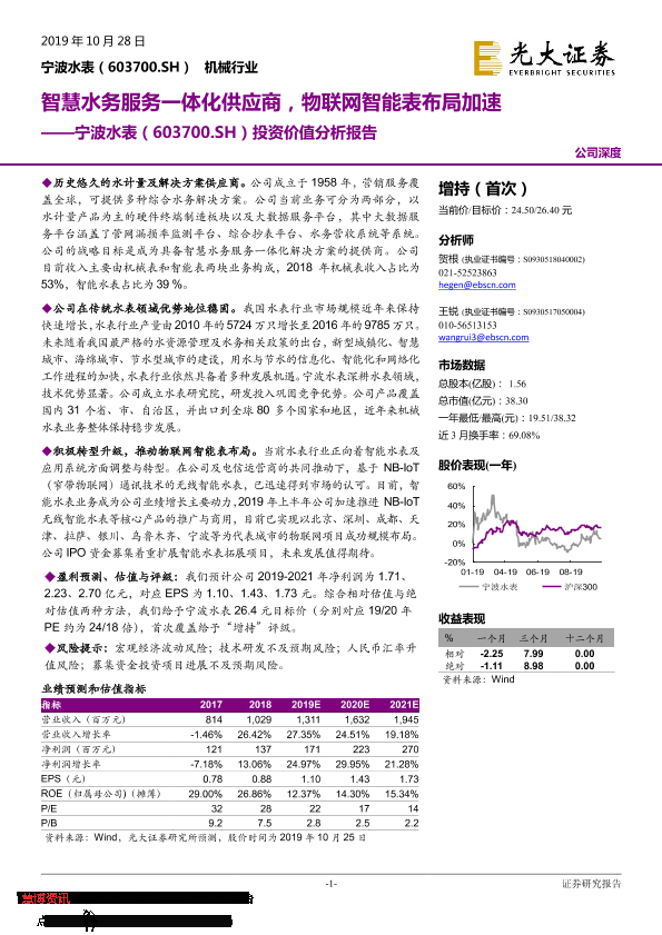 【光大证券】【20191028】智慧水务服务一体化供应商,物联网智能表布局加速-27页