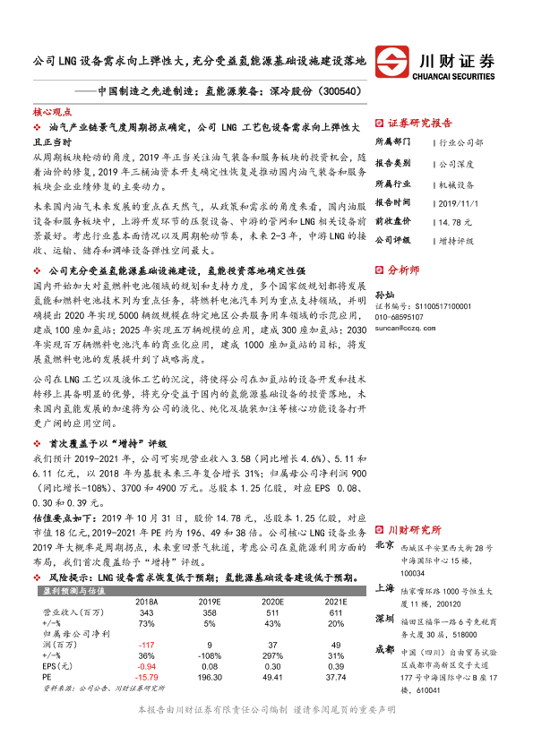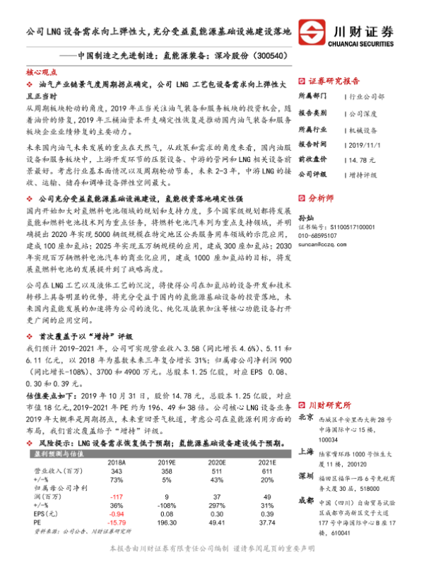 【川财证券】【20191101】1101-川财证券-深冷股份-300540.SZ-中国制造之先进制造:氢能源装备:深冷股份:公司LNG设备需求向上弹性大,充分受益氢能源基础设施建设落地-29页
