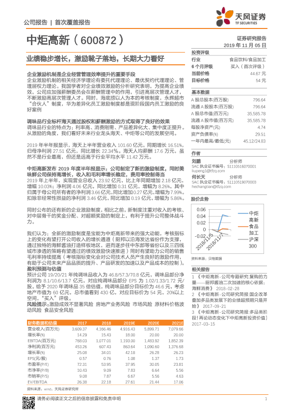 【天风证券】【20191105】中炬高新-业绩稳步增长,激励靴子落地,长期大力看好-23页