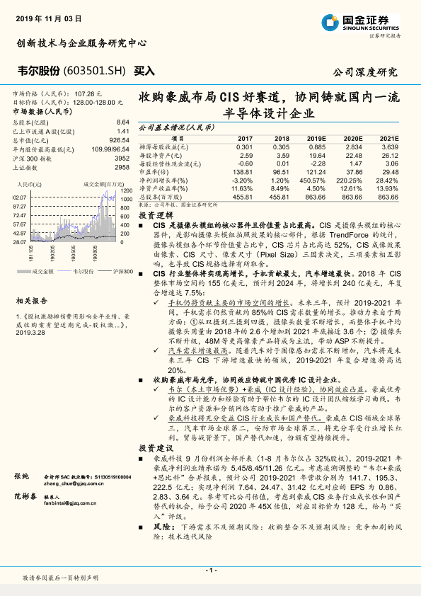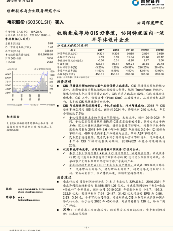 【国金证券】【20191103】收购豪威布局CIS好赛道,协同铸就国内一流半导体设计企业-33页