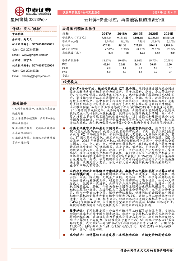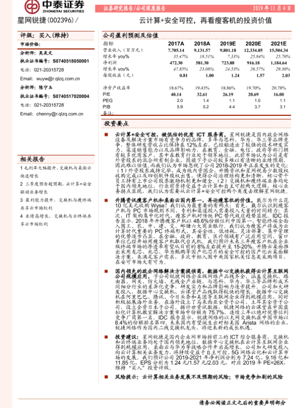 【中泰证券】【20191104】20191104-中泰证券-星网锐捷-002396.SZ-云计算+安全可控,再看瘦客机的投资价值-33页